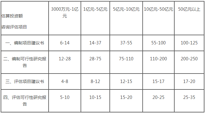 項目可行性研究費計費標準