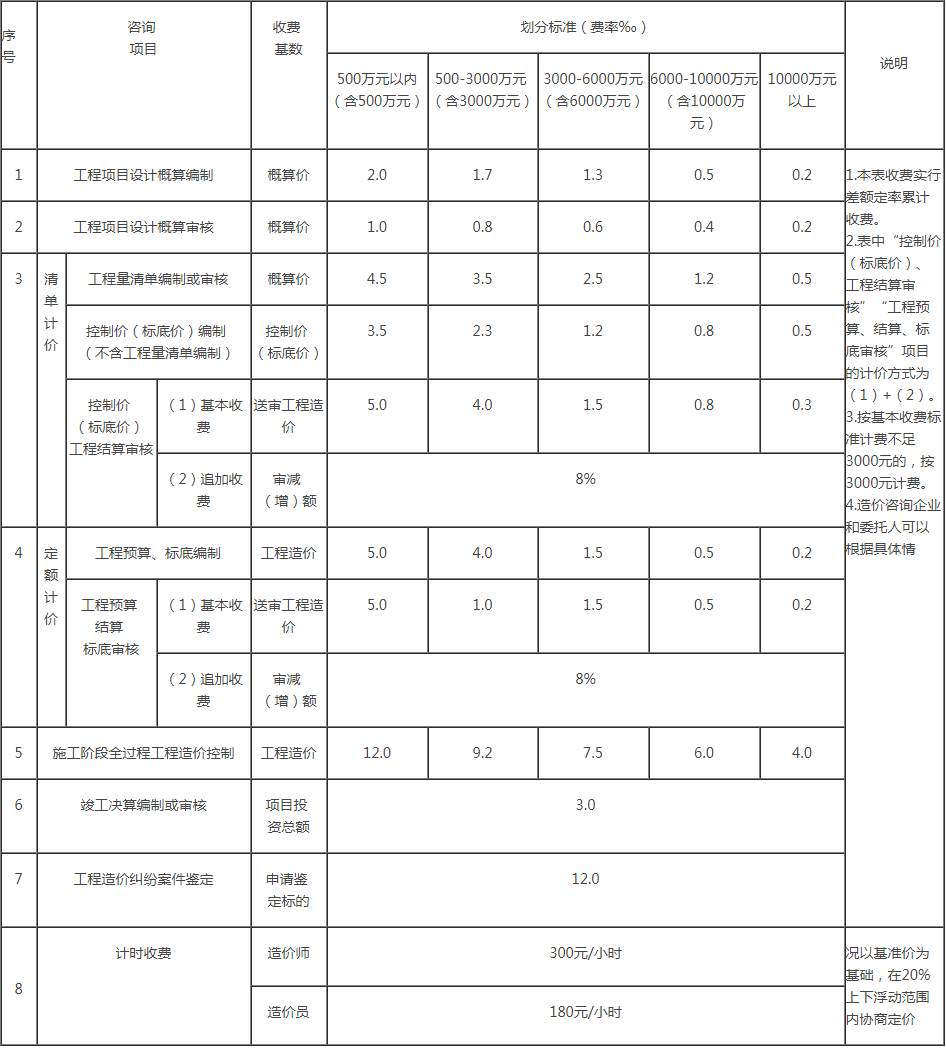 根據省物價局(委員會)、計委(計經委)計價格[1999]1283號文規定,建設項目前期工作咨詢收費按建設項目估算投資額分檔收費,標準如下附件: