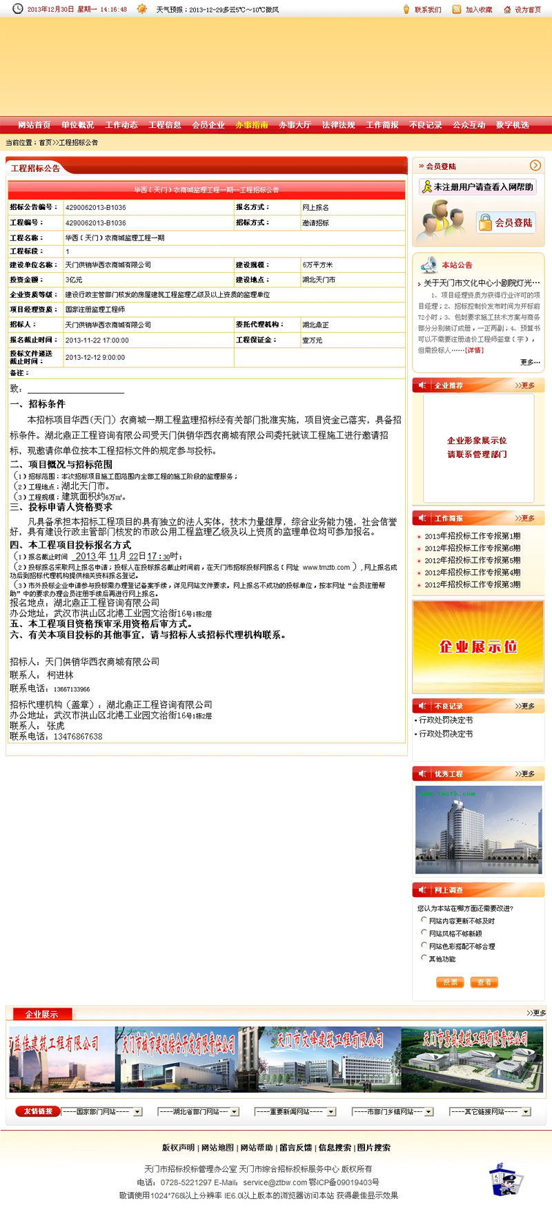 華西(天門)農(nóng)商城項目市場一期(三標段)施工總承包工程
