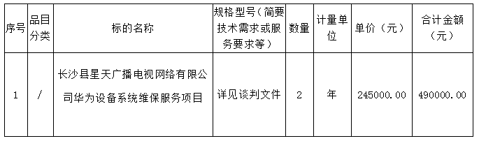 1、項目名稱:長沙縣星天廣播電視網絡有限公司華為設備系統維保服務項目