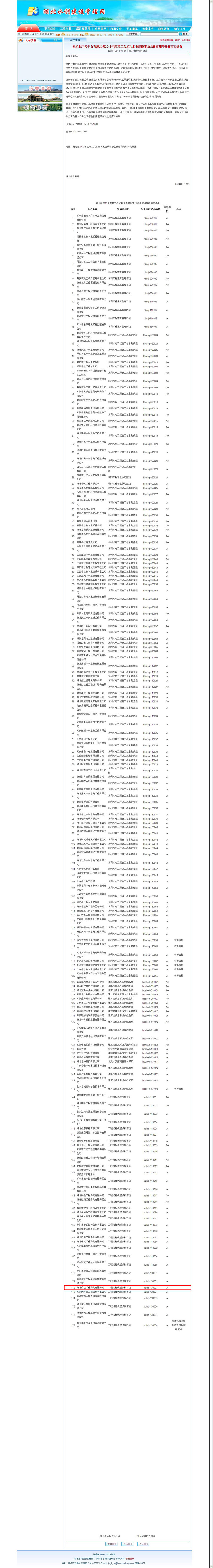 祝賀我公司在湖北省水利廳2013年度第二次水利水電建設市場主體信用等級評定中被授予水利招標代理單位A級信用等級。
