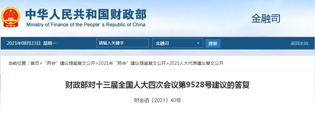 政策速遞 | ?財政部對十三屆全國人大四次會議第9528號建議的答復