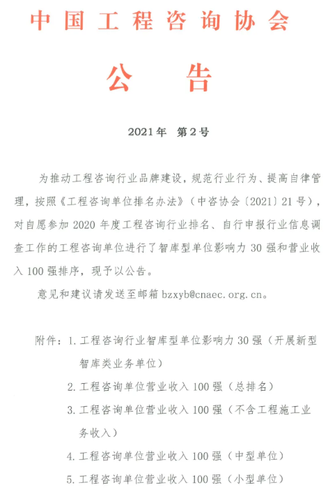 近日,中國工程咨詢協(xié)會和中國建設工程造價管理協(xié)會分別發(fā)布了《工程咨詢單位營業(yè)收入100強(中型單位)》和《關于2021年第三批工程造價咨詢企業(yè)信用評價結果》,其中,鼎正工程咨詢股份有限公司榮獲AAA等級信用評價,并在上述百強排名中位列第68: