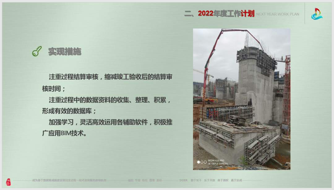 5、造價咨詢事業部:全過程造價咨詢項目采用計劃先行,過程管控,將竣工結算工作前置,以過程分階段結算的方式,融工程結算與整個項目管理為一體。