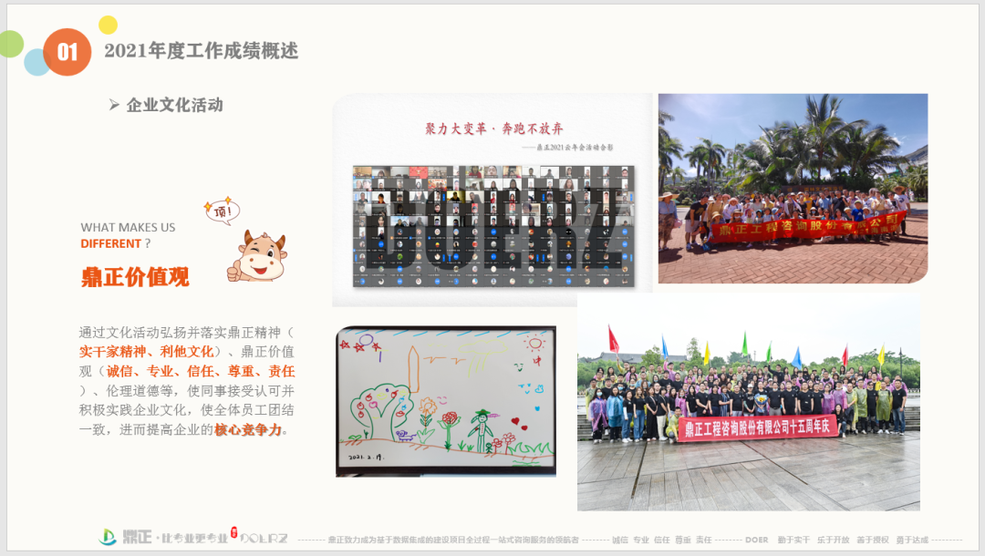 本次年終總結會議既是一次回顧過往的總結大會,也是一次展望未來、再創佳績的動員大會。感謝全體鼎正人在2021年度的積極付出與努力,望大家繼續加強自身學習,提高工作效率,端正工作態度,提升服務質量,全體同仁齊心協力乘勢而上,凝聚力量共筑未來,相信明天會更好!