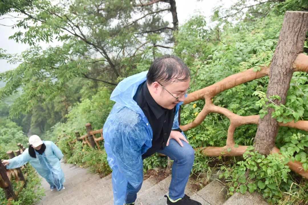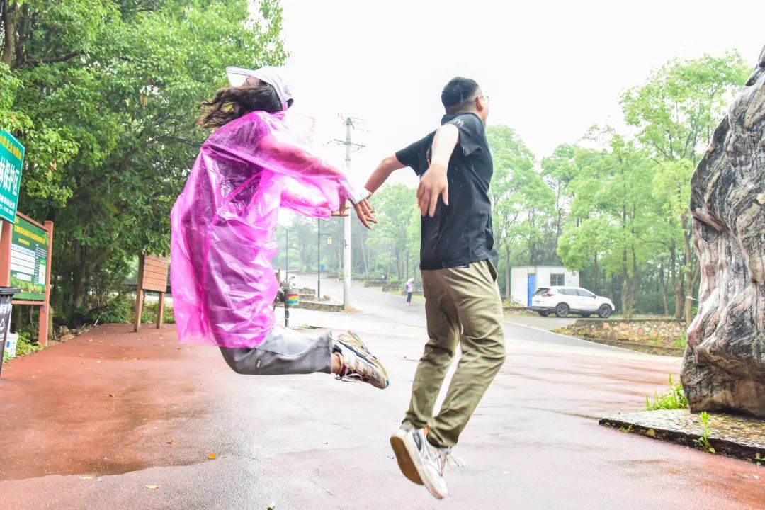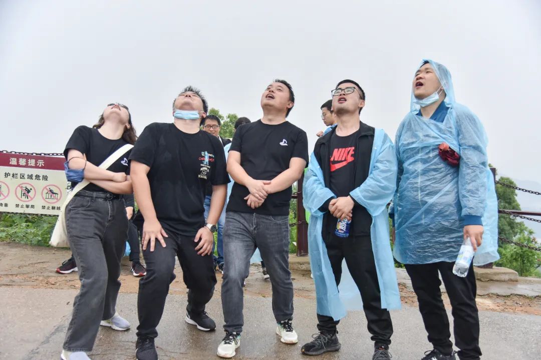 不一會兒的功夫,雨越下越大,一群舍不得下山的人還在努力拍照。