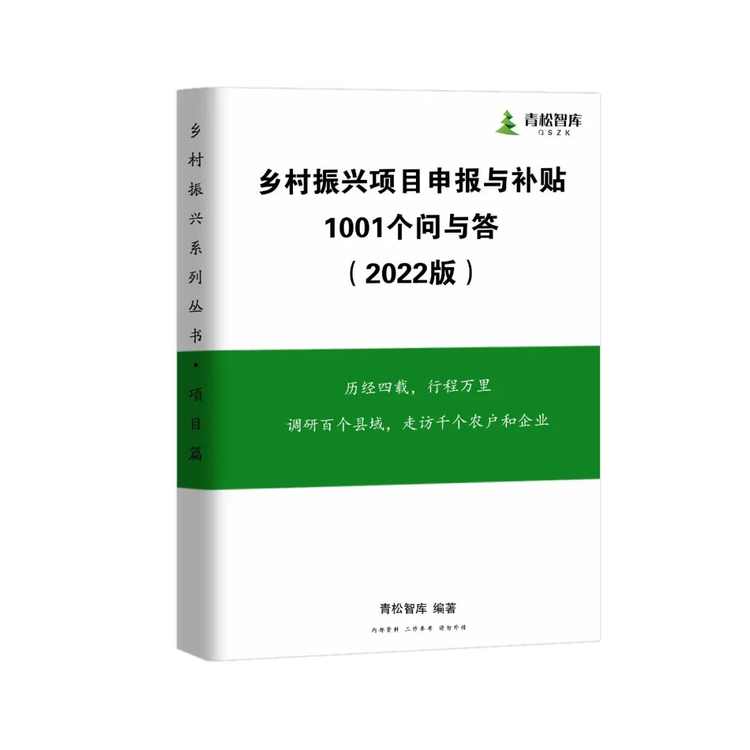 歷經(jīng)四載,行程萬里,調(diào)研百個縣域,走訪千家農(nóng)戶(或企業(yè)),凝聚匠心,由青松智庫編制的《鄉(xiāng)村振興項(xiàng)目申報(bào)與補(bǔ)貼1001個問與答》內(nèi)部資料,數(shù)量有限,是常用工作參考工具書,有需要的請加緊與青松智庫聯(lián)系。