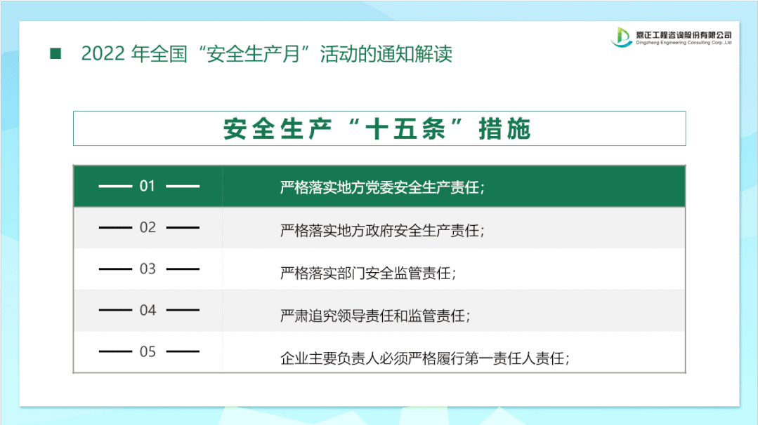 今年6月是第21個(gè)全國“安全生產(chǎn)月”,主題是“遵守安全生產(chǎn)法,當(dāng)好第一責(zé)任人”,6月16日為全國安全宣傳咨詢?nèi)?。鼎正咨詢積極響應(yīng)國家號(hào)召,全面啟動(dòng)安全生產(chǎn)月活動(dòng),凝聚安全共識(shí),進(jìn)一步強(qiáng)化底線思維,將安全意識(shí)植根于每個(gè)人心間。