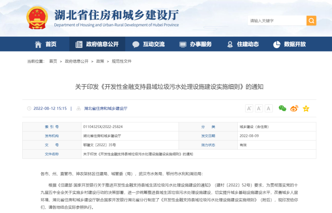 根據(jù)《住建部 國家開發(fā)銀行關(guān)于推進(jìn)開發(fā)性金融支持縣域生活垃圾污水處理設(shè)施建設(shè)的通知》(建村〔2022〕52號)要求,為貫徹落實黨的十九屆五中全會關(guān)于實施鄉(xiāng)村建設(shè)行動的決策部署,進(jìn)一步統(tǒng)籌推進(jìn)縣域生活垃圾污水處理設(shè)施建設(shè),切實提升城鄉(xiāng)基礎(chǔ)設(shè)施建設(shè)水平,改善城鄉(xiāng)人居環(huán)境,湖北省住房和城鄉(xiāng)建設(shè)廳聯(lián)合國家開發(fā)銀行湖北省分行制定了《開發(fā)性金融支持縣域垃圾污水處理設(shè)施建設(shè)實施細(xì)則》(附后),現(xiàn)印發(fā)給你們,請各地結(jié)合實際參照執(zhí)行。