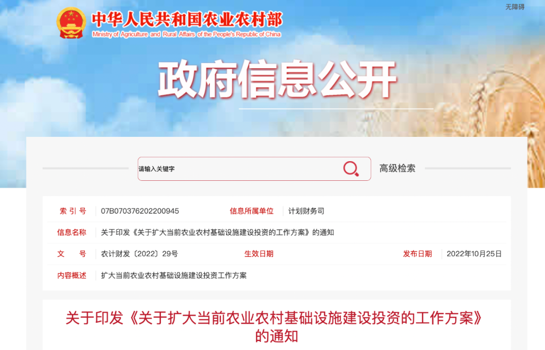 《關于擴大當前農業農村基礎設施建設投資的工作方案》全文發布!