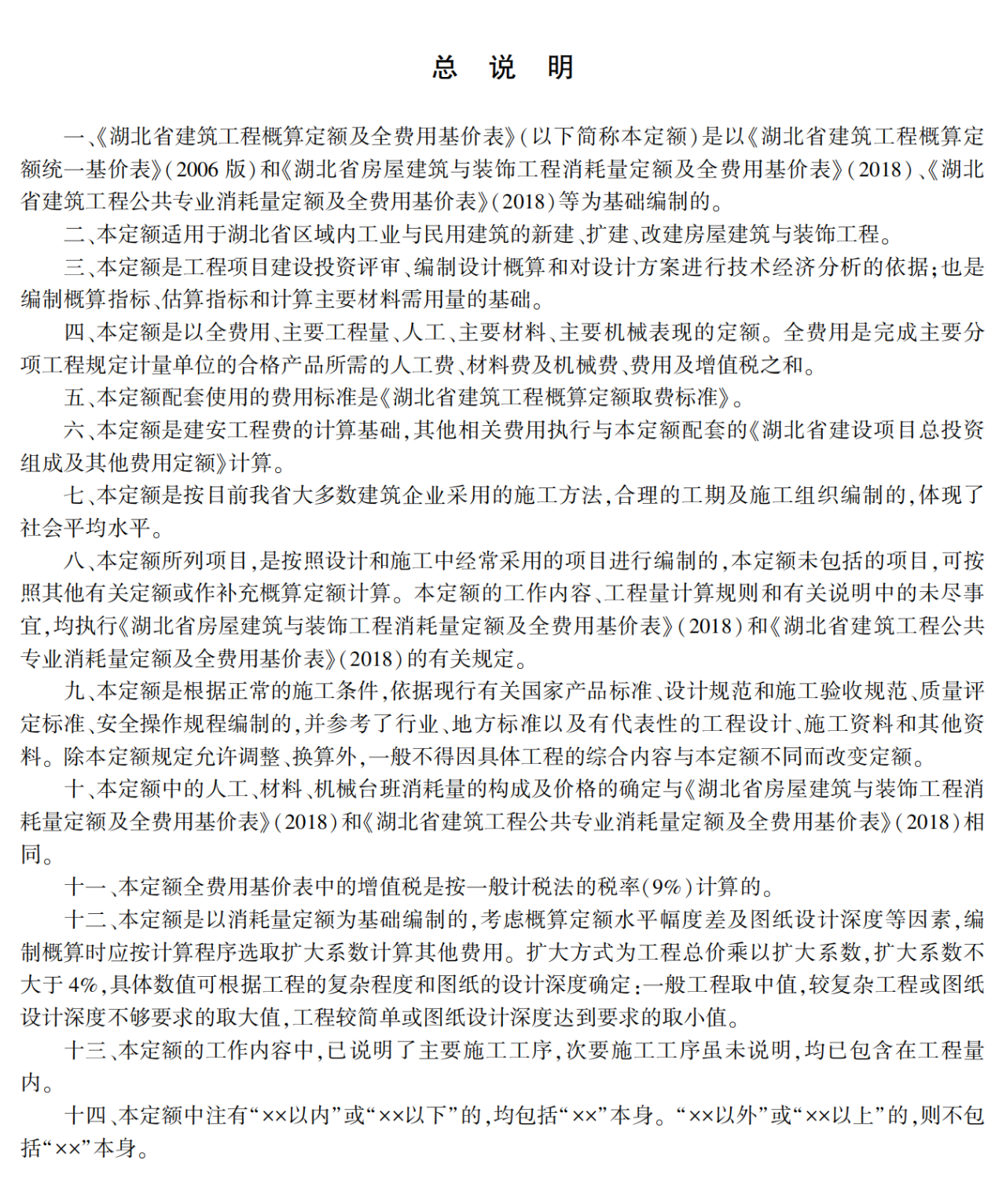 一、《湖北省建設工程概算定額及全費用基價表》是我省工程項目建設投資評審、編制設計概算和對設計方案進行技術經濟分析的依據《湖北省建設項目總投資組成及其他費用定額》編制、評審和管理可行性研究投資估算和初步設計概算投資的依據