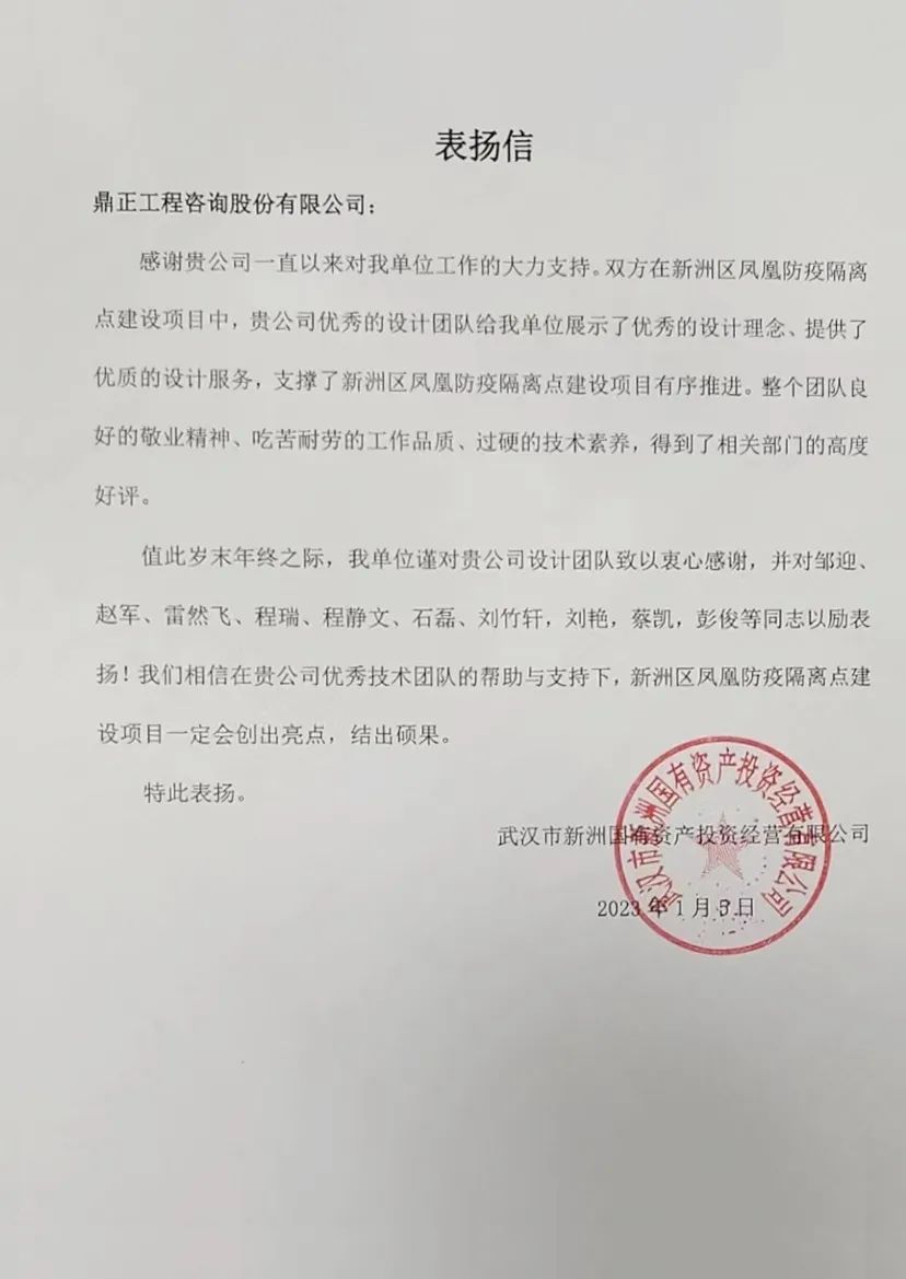 新洲區鳳凰隔離點建設項目,建筑面積為10728.31平方米。鼎正為本項目提供建筑方案設計、初步設計和施工圖服務,參與了項目總體規劃、發展定位、功能體系策劃、運營實施策略等工作,展現了優秀的設計服務能力和專業水平。項目自開工以來,積極對接當地政府部門,及時解決業主的問題,克服了工期緊張、項目復雜、限額設計、疫情起伏等困難,順利完成項目設計,其設計成果得到了行業專家及主管部門的一致認可。