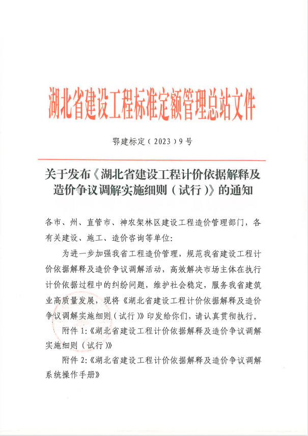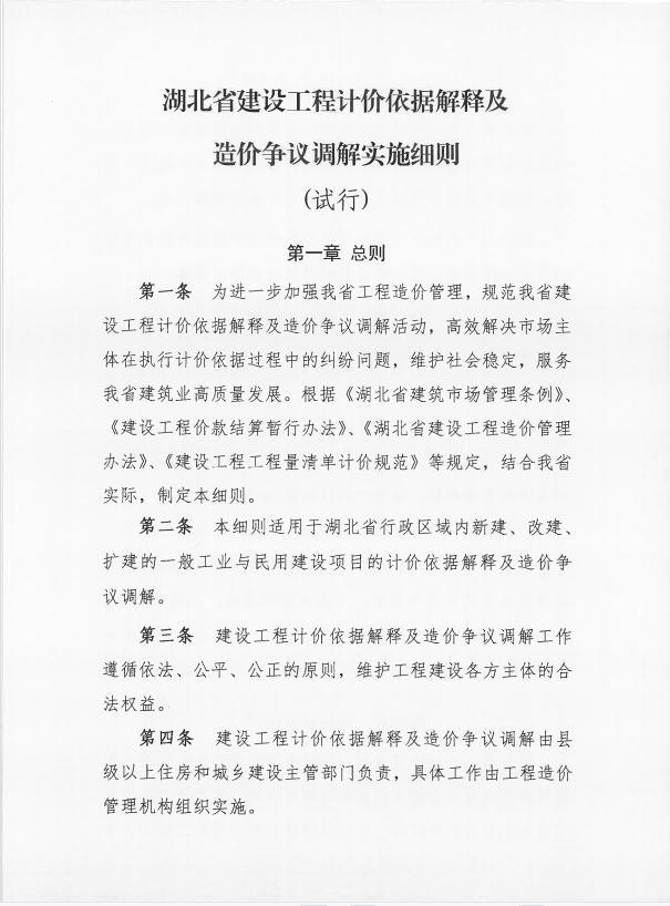 《湖北省建設(shè)工程計價依據(jù)解釋及造價爭議調(diào)解實施細(xì)則(試行)》