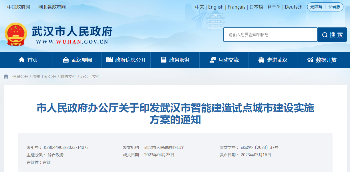 武漢市智能建造試點城市建設實施方案