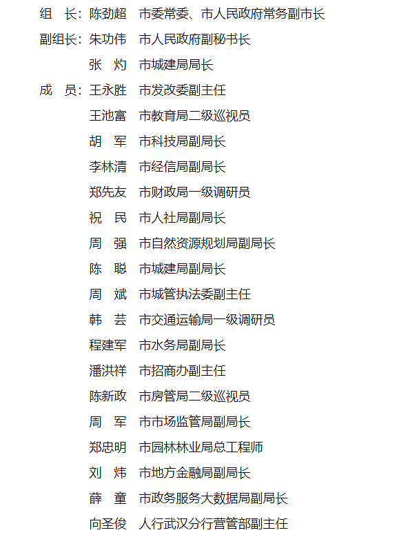(一)加強組織領導。成立由市人民政府分管城建工作的副市長任組長,市直各相關部門、相關單位為成員的武漢市智能建造試點城市建設工作領導小組(具體組成人員名單附后),負責統籌協調全市智能建造試點工作。建立領導小組成員單位聯席會議制度,定期召開工作會議研究推動試點工作。