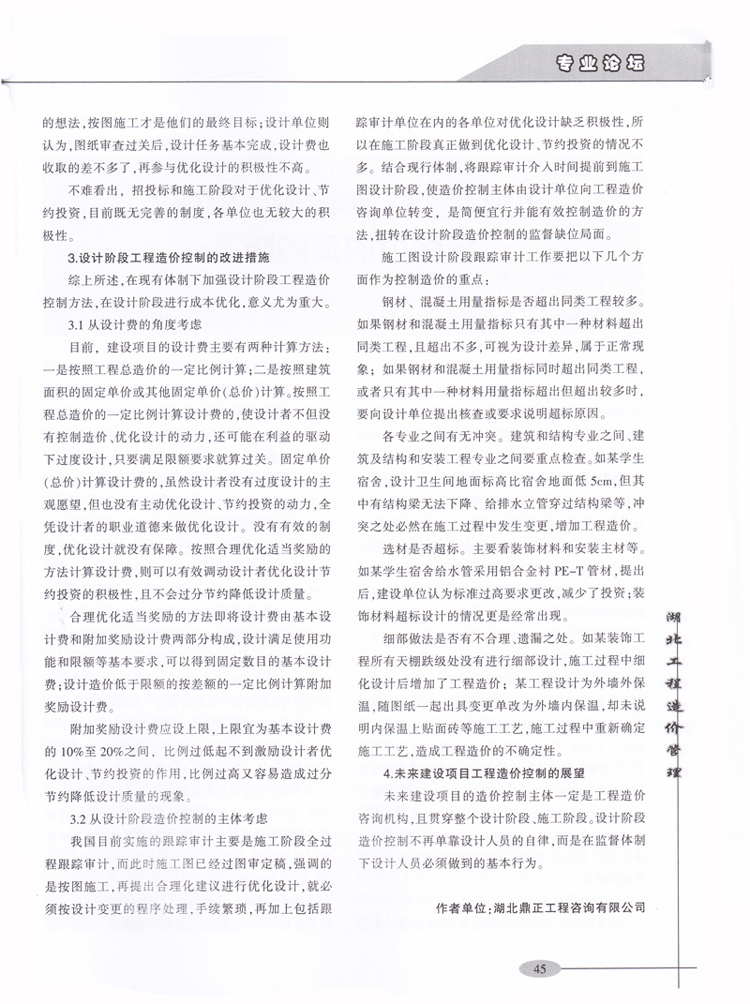 祝賀我司李光洲同志所著文章《淺談建設(shè)項(xiàng)目在設(shè)計(jì)階段的造價(jià)控制》在全國(guó)工程造價(jià)管理類(lèi)優(yōu)秀期刊《湖北工程造價(jià)管理》2014年第4期“專(zhuān)業(yè)論壇”板塊發(fā)表。