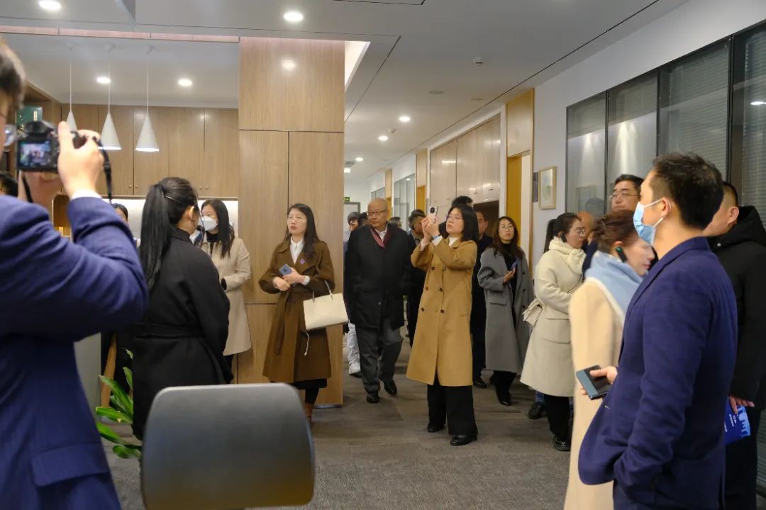 王董陪同尹教授一行參觀了鼎正第一辦公空間、第二辦公空間,并詳細介紹了鼎正的企業(yè)文化、發(fā)展戰(zhàn)略、業(yè)務(wù)模塊,與會代表對鼎正“顏值”連連稱贊道“這里辦公氛圍太舒服了”!