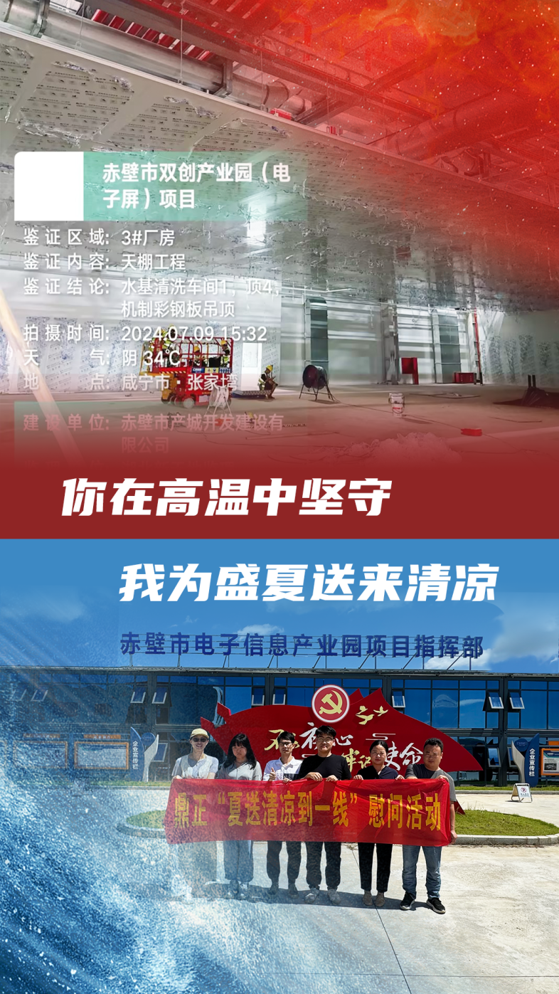 7月4日,鼎正副總經理程正一帶隊,前往高溫作業外場開展防暑降溫保障工作,為駐場同事送上清涼飲品和防暑降溫藥品,并叮囑大家合理調整高溫作業和休息時間,注意勞逸結合。