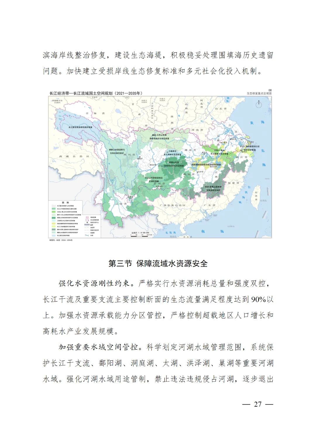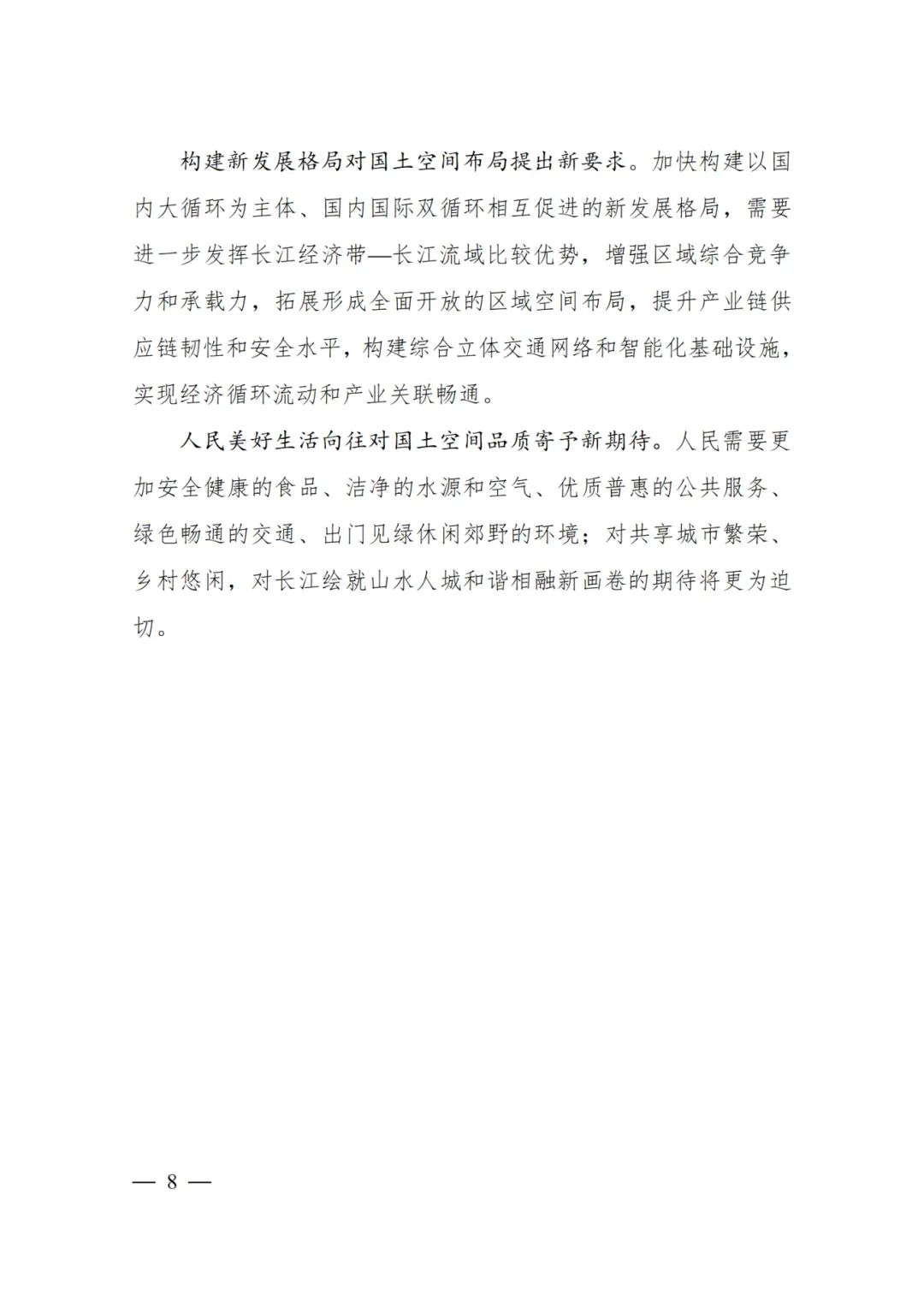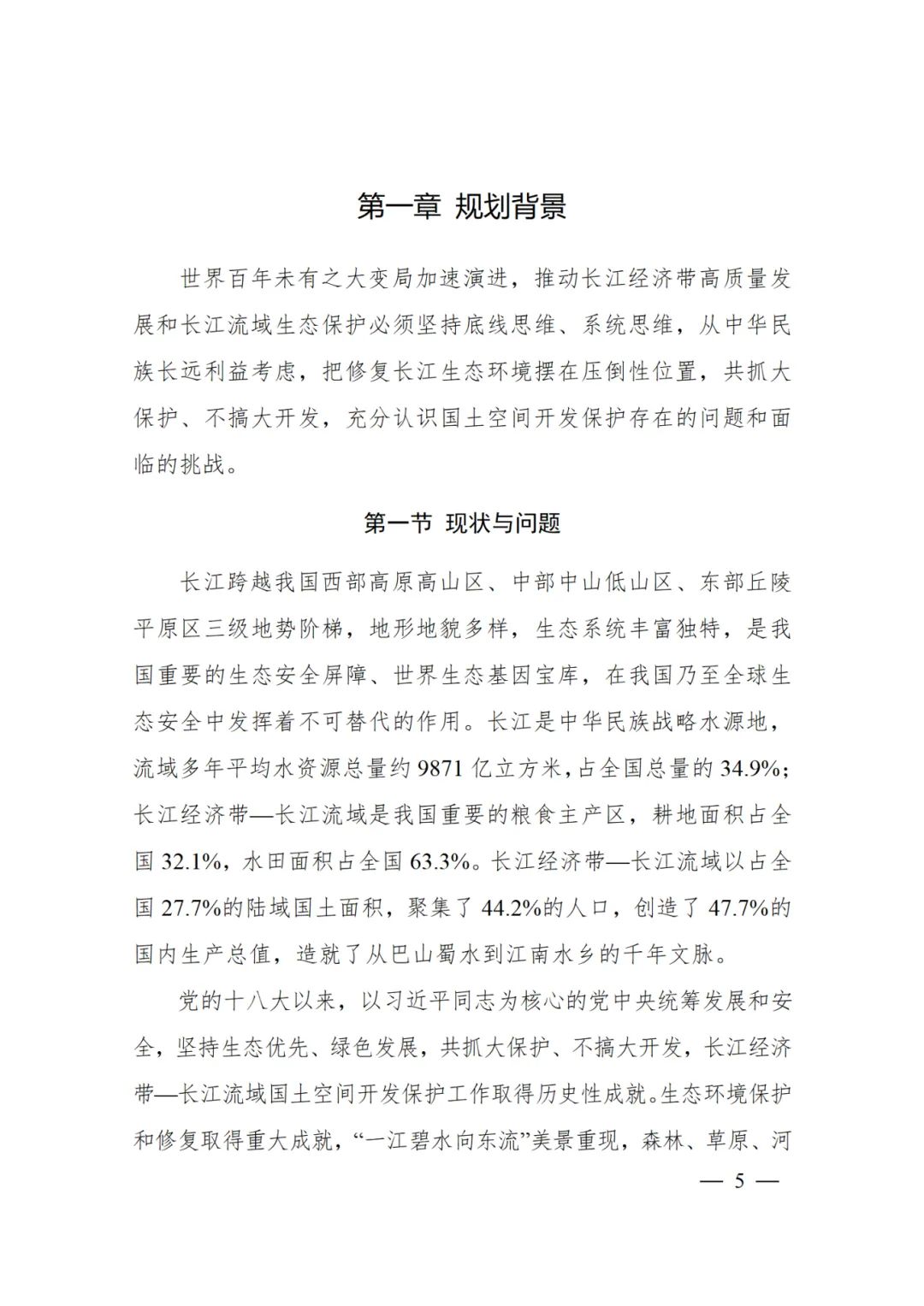 2024年2月9日,《長江經濟帶—長江流域國土空間規劃(2021—2035年)》經國務院批復同意。9月10日,自然資源部正式印發《長江經濟帶—長江流域國土空間規劃(2021—2035年)》。規劃范圍包括長江經濟帶11個?。ㄊ校┤?/strong>,以及《長江保護法》規定的長江流域其他8?。▍^、市)的相關縣級行政區域,共計1173個縣級行政區域。規劃范圍包括陸域國土和內水、領海。其中,陸域面積240萬平方公里。(后附規劃范圍詳細表格)規劃期限為2021年至2035年。