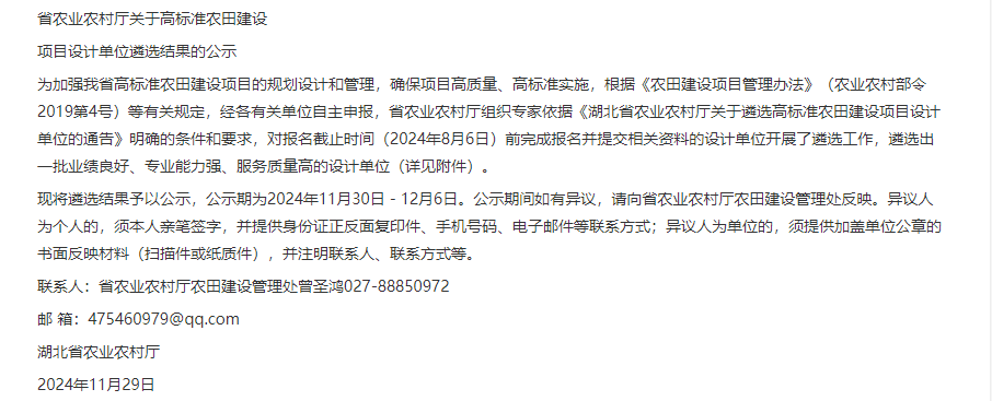 喜報 | 熱烈祝賀我司入選湖北省農業農村廳高標準農田建設項目遴選設計單位