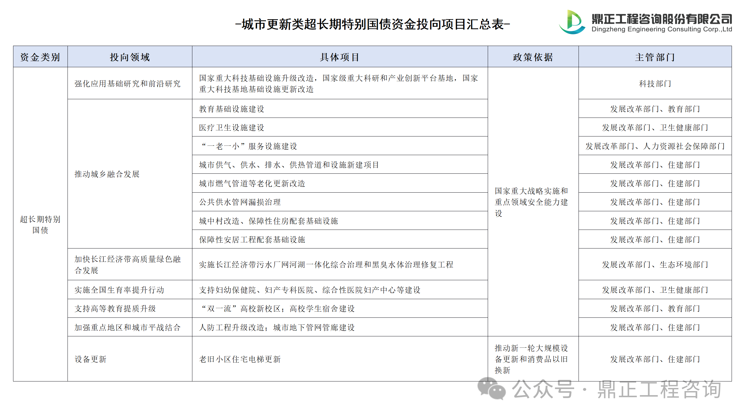 財政部、住房城鄉建設部于2024年4月30日聯合印發《關于開展城市更新示范工作的通知》,明確示范城市的中央財政補助資金重點支持四大方面:城市地下管網更新改造、城市污水管網全覆蓋樣板區建設、市政基礎設施補短板、老舊片區更新改造四大領域。具體項目上不得重復使用2023年增發國債資金、中央預算內投資、車購稅資金、超長期特別國債等其他渠道中央財政資金。