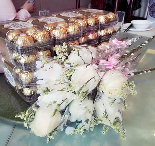 男神們?yōu)榕駛儷I(xiàn)上鮮花和禮物
