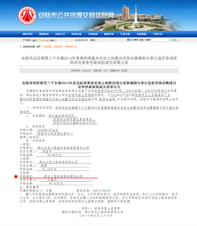 【經(jīng)營成果】我司中標(biāo)安陸市巡店鎮(zhèn)等三個(gè)鄉(xiāng)鎮(zhèn)2013年度高標(biāo)準(zhǔn)基本農(nóng)田土地整治項(xiàng)目決算編制與審計(jì)造價(jià)咨詢采購項(xiàng)目