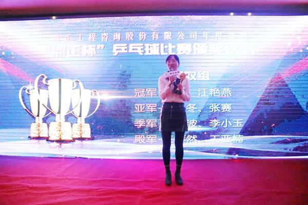 隨后,頒獎典禮正式開始。首先進(jìn)行的是鼎正咨詢歷屆傳統(tǒng)環(huán)節(jié)第七屆“鼎正杯”乒乓球比賽頒獎儀式。鼎正運動健兒們在本屆乒乓球比賽中盡情揮灑著激情與汗水,充分展現(xiàn)了鼎正人團(tuán)結(jié)向上、自強(qiáng)不息的精神風(fēng)貌。