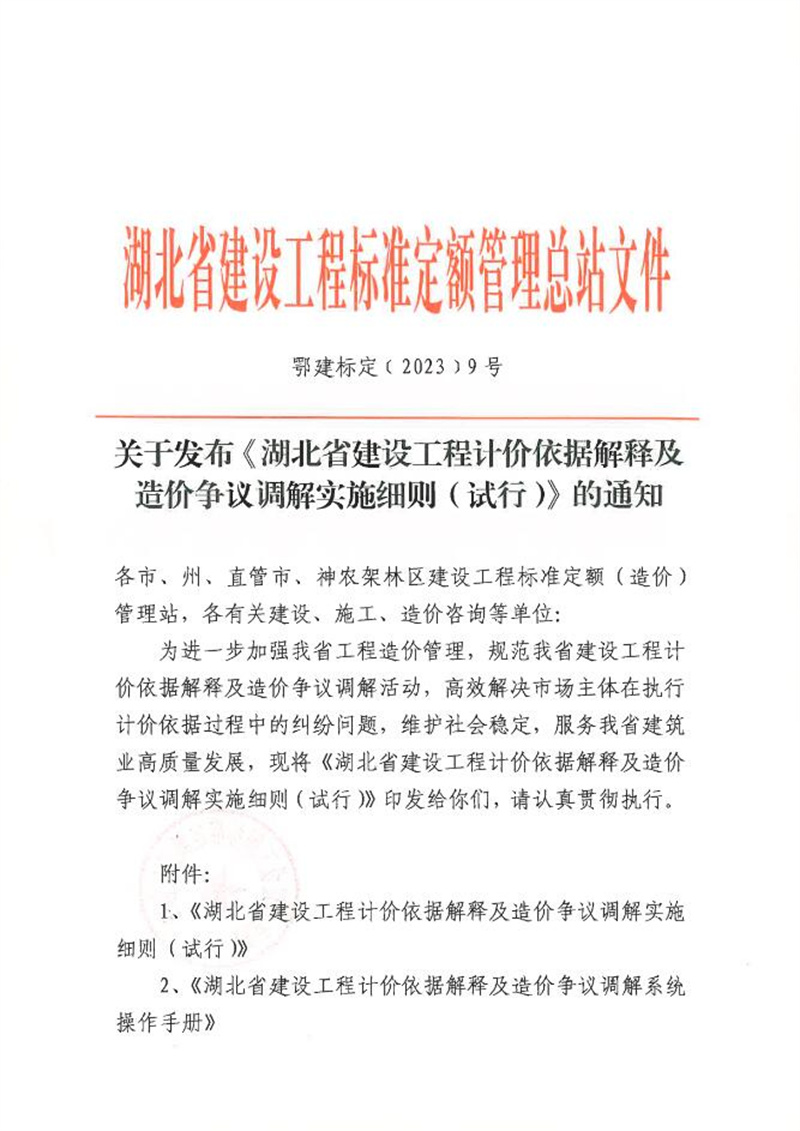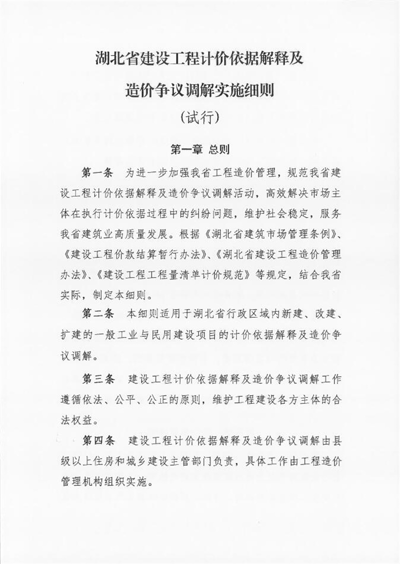 轉(zhuǎn)發(fā)關(guān)于發(fā)布《湖北省建設(shè)工程計價依據(jù)解釋及造價爭議調(diào)解實施細(xì)則(試行)》的通知